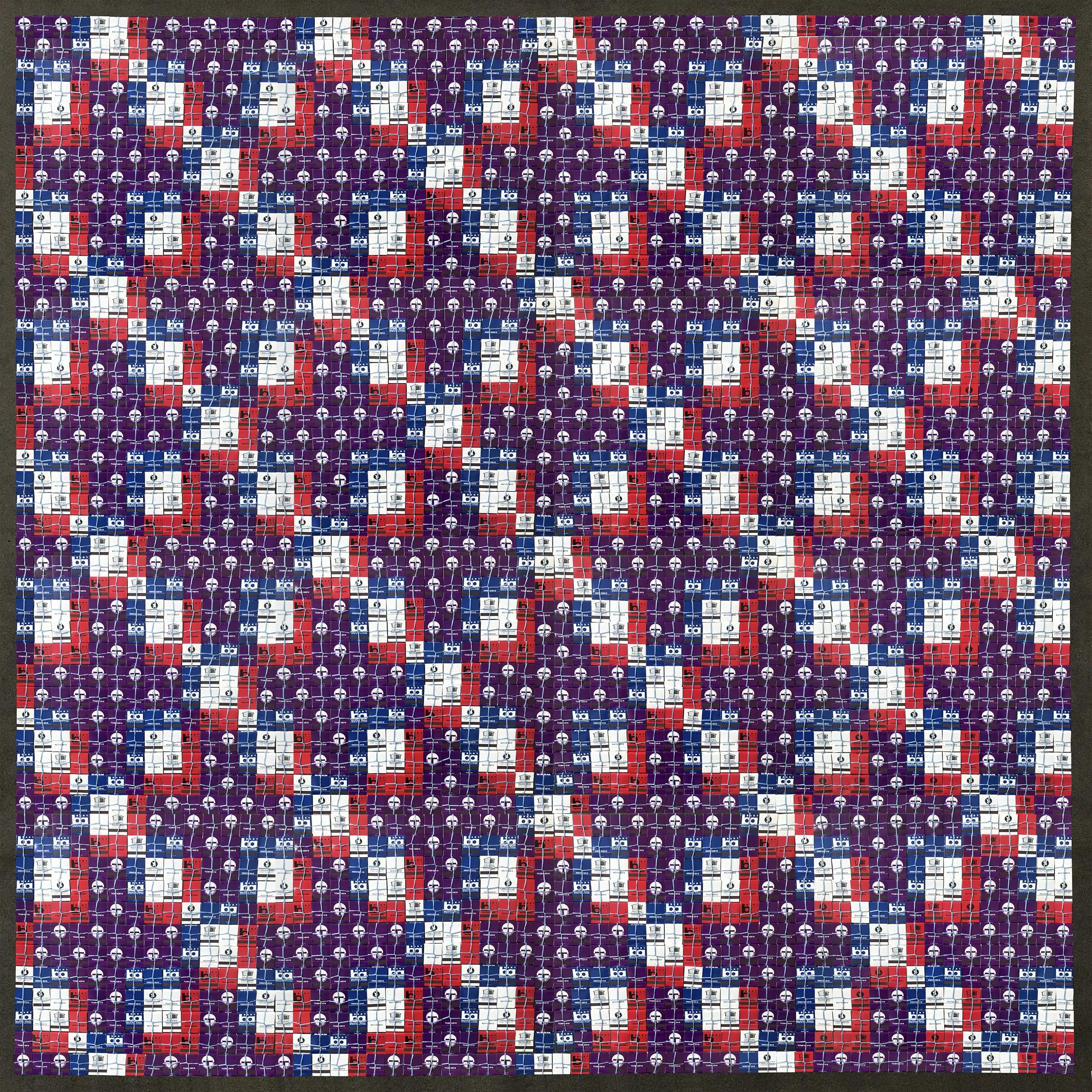 < DARNstudio Doublecross 92 x 100 in custom souvenir matchbooks, recycled felt, cotton thread2019 Click image to expand.