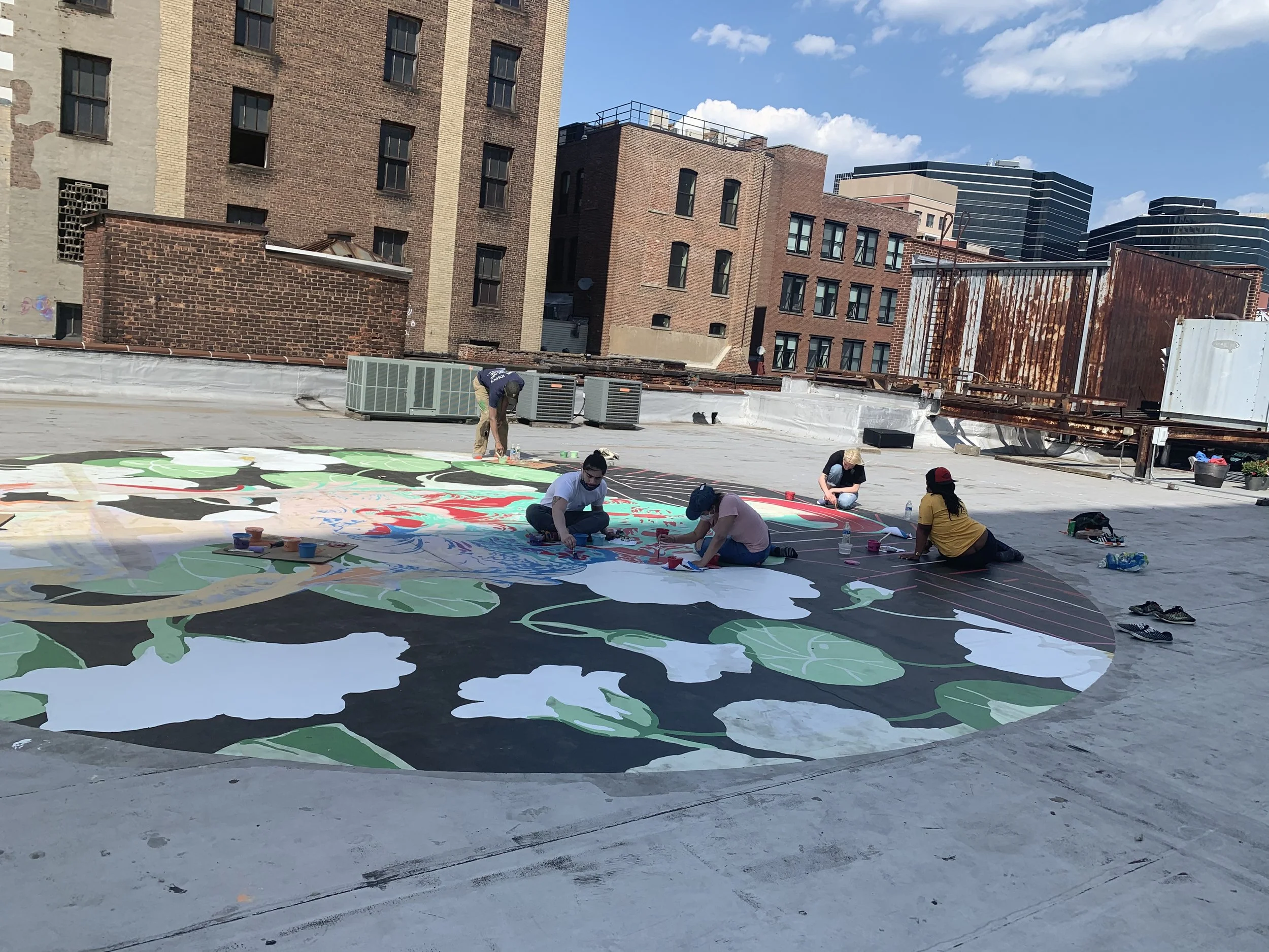 Featuring an image created for a body of work that would become the Interior Dialogue exhibition displayed at Long Gallery Harlem, this mural was painted by myself and members of the Newark, New Jersey artist community on the roof of the artist organization, Project for Empty space in downtown Newark.